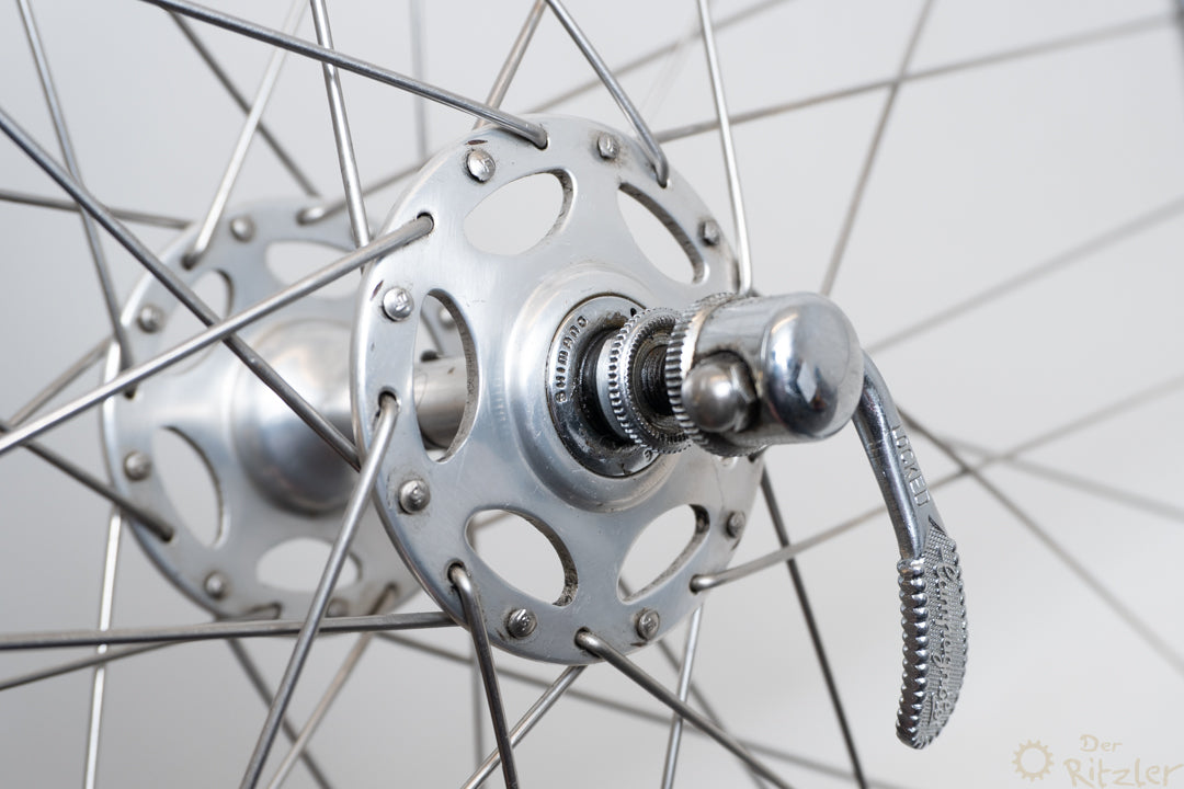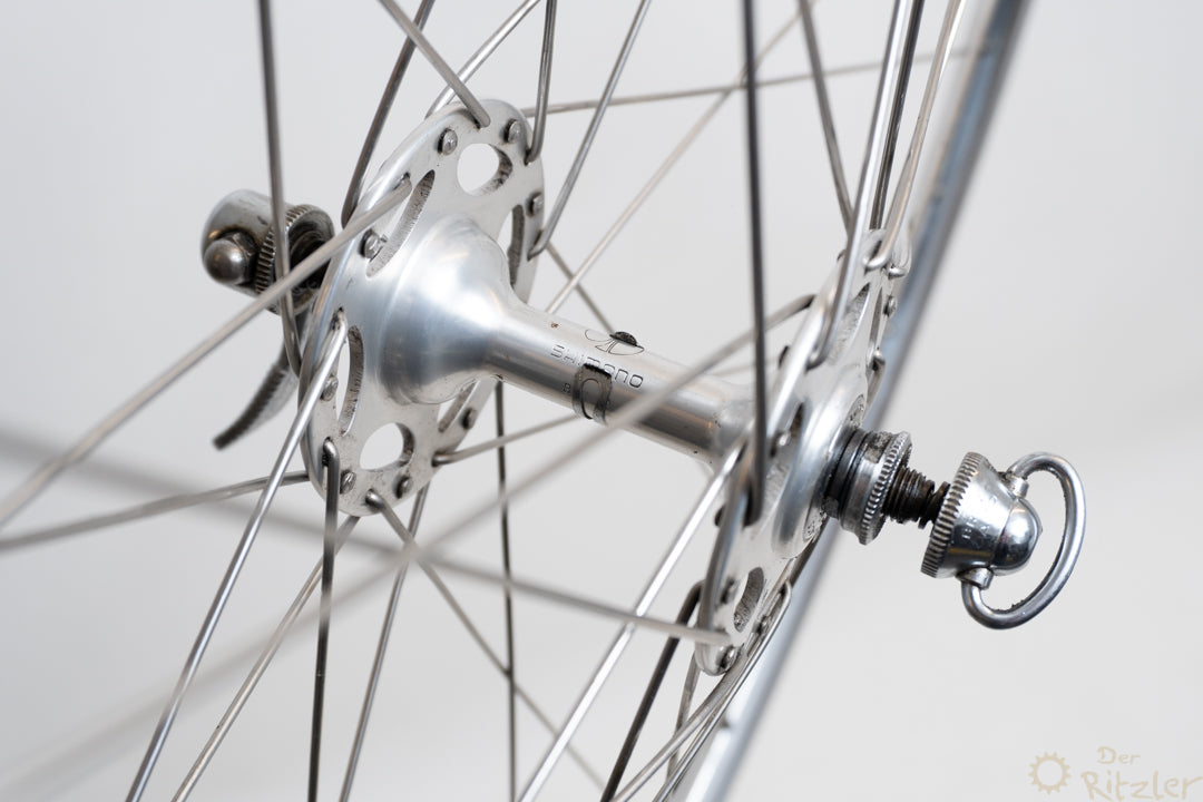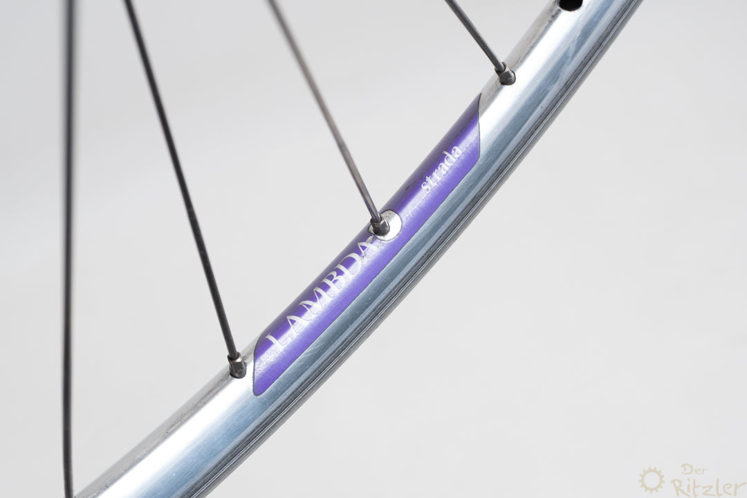 Nabe: Shimano Dura-Ace HochflanschFelge: Campagnolo Lambda StradaEinbaubreite: 100/126mm